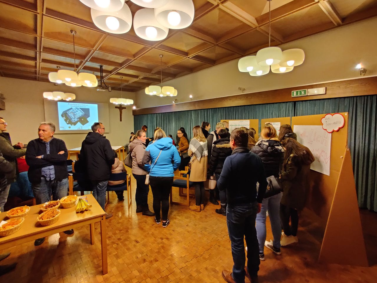 Der Infoabend im Februar 2020 zum Jugendzentrum informierte interessierte Jugendliche und Erwachsene aus dem Dorf über das geplante Jugendzentrum. Teil des Infoabens war auch ein Lokalaugenschein im alten Kindergarten, damit die Teilnehmer die Dimensionen besser einschätzen konnten und somit auch die Pläne des Architekten besser verstehen konnten. Zudem wurde eine Echtzeit-Onlineumfrage durchgeführt, bei der die ca. 50 anwesenden Personen alle eifrig mitmachten. Die Ergebnisse dazu findest du hier.